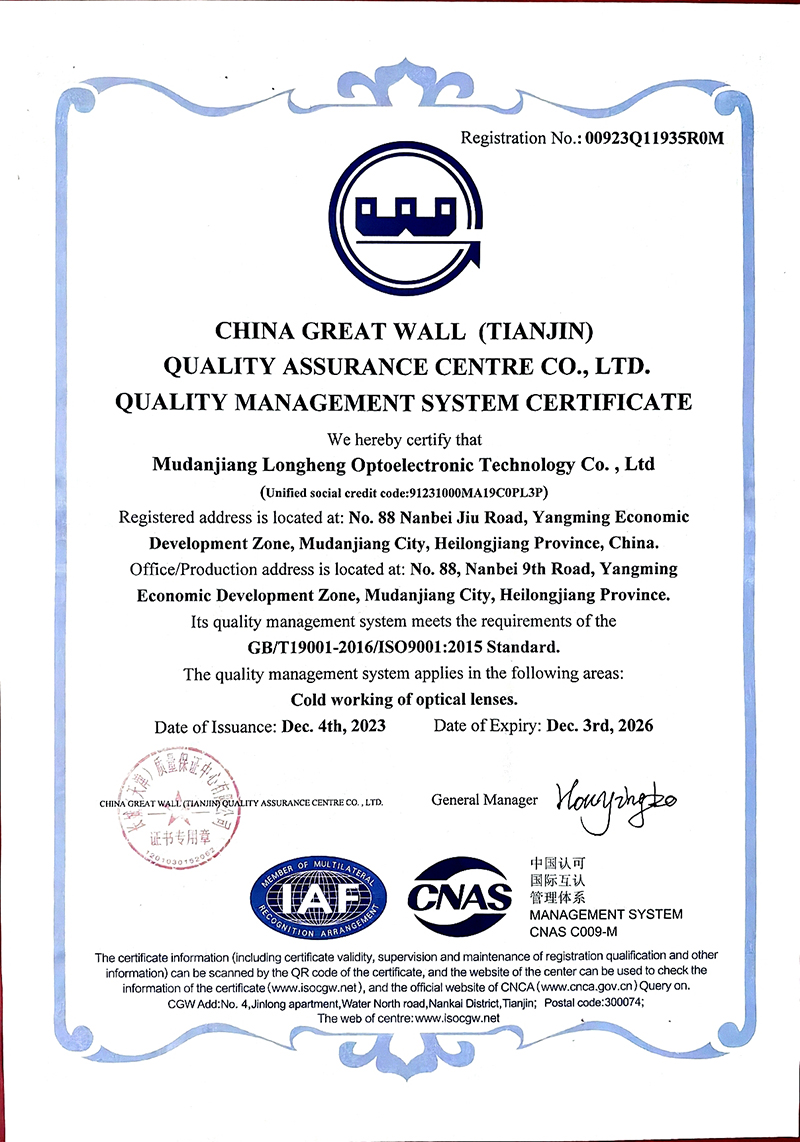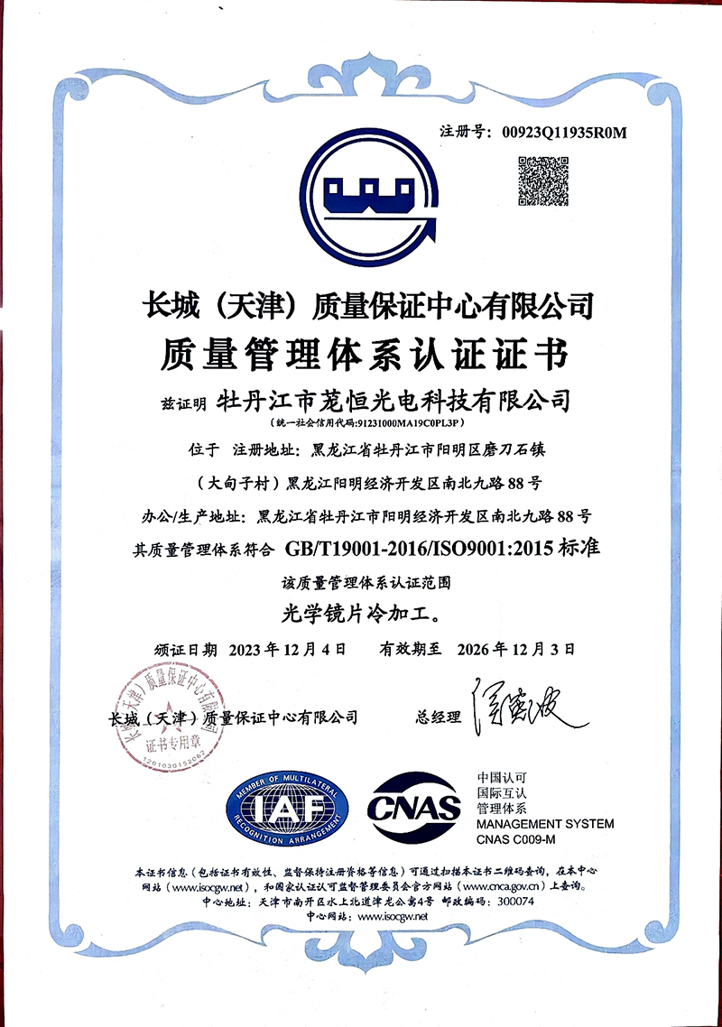 質量體系-牡丹江市蘢恒光電科技有限公司